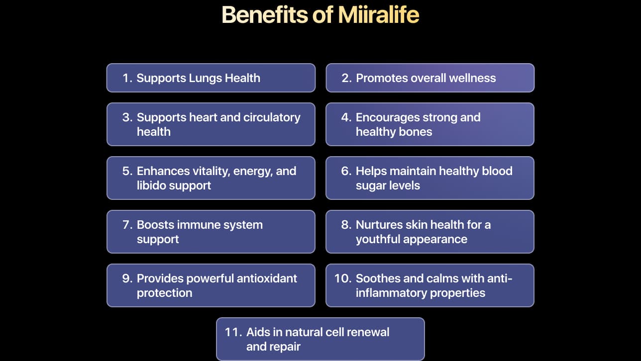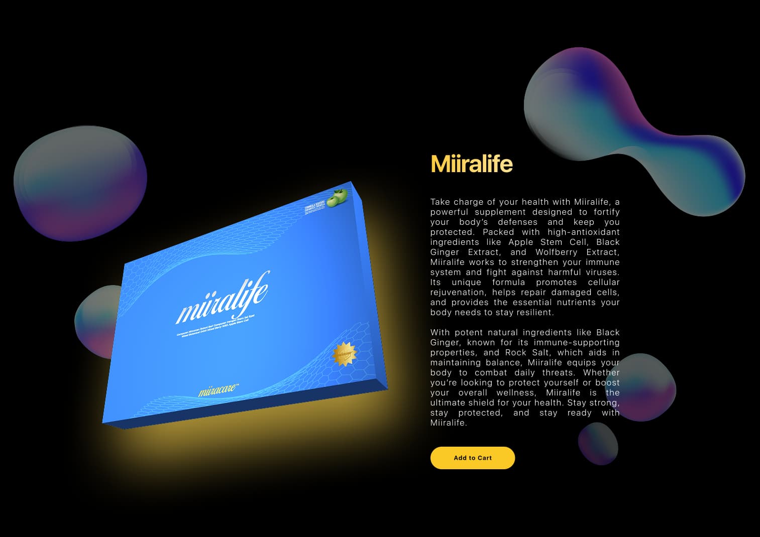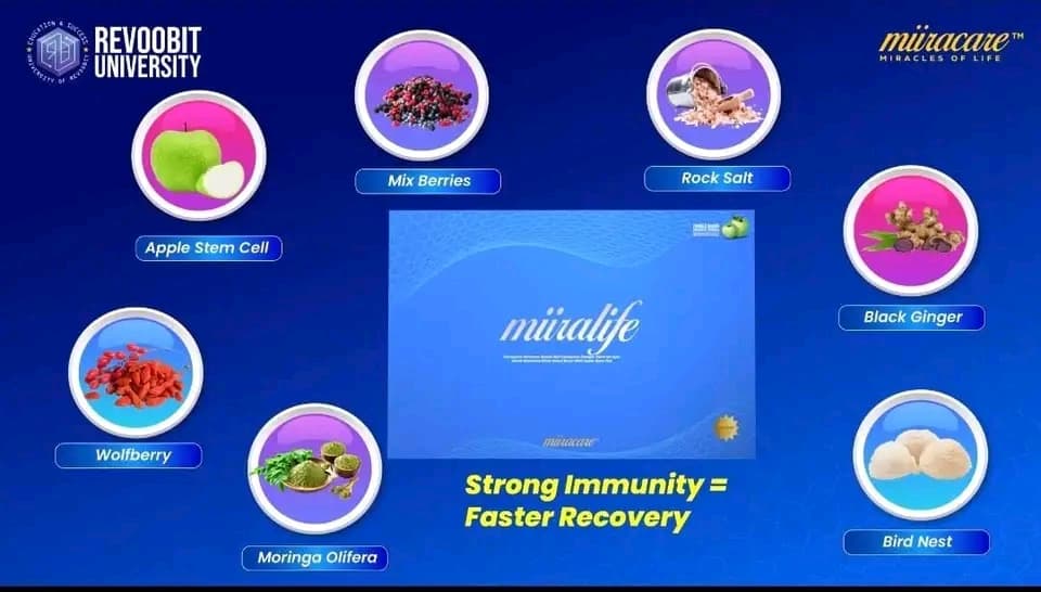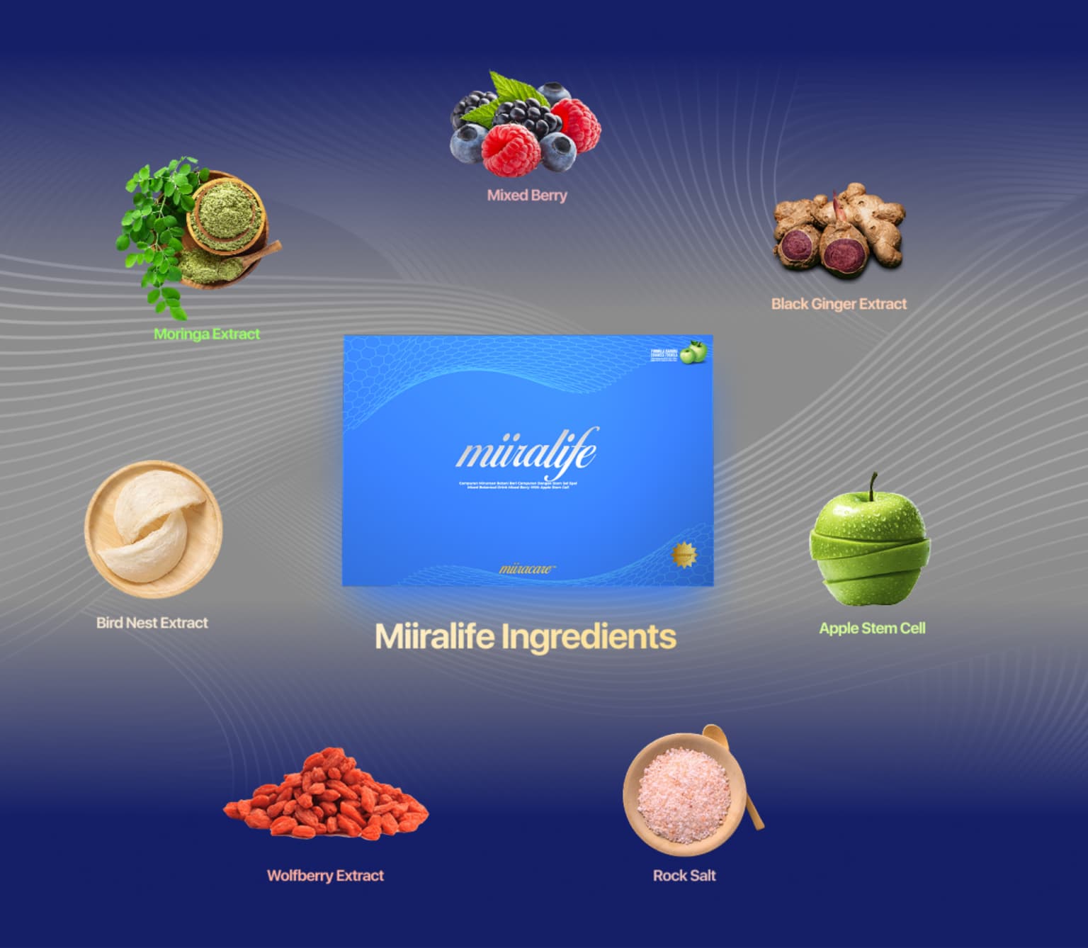 Miiralife is a premium wellness supplement designed to boost vitality, fortify your immune system, and enhance overall well-being. With a powerful blend of Black Ginger Extract, Apple Stem Cell, and Moringa Extract, this formula works at the cellular level to fight infections, support key organs, and promote fast nutrient absorption for optimal health.